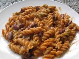 Cestovinové miš*maš s fazuľkouIngrediencie: podľa chuti, hlavné potraviny sú cestovina a fazuľa či už mexikana alebo akákoľvek iná konzervovaná.